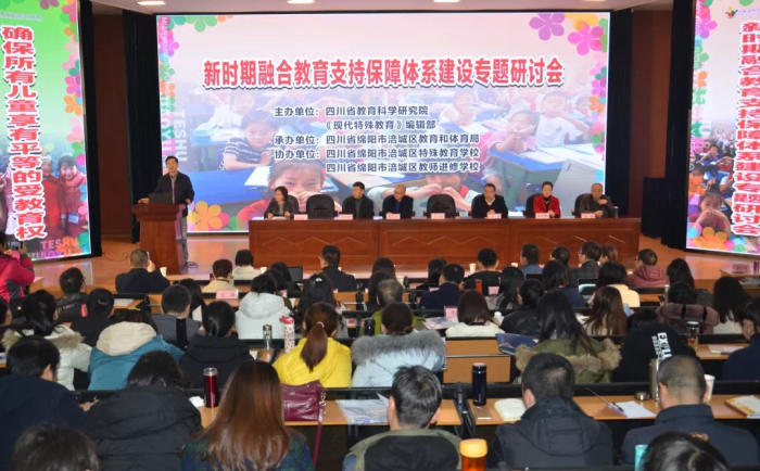 为深入贯彻落实党的十九届四中全会关于“健全特殊教育保障机制”的要求和全国教育大会精神,2019年12月23日至24日,由我院与《现代特殊教育》杂志联合主办,绵阳市涪城区教育和体育局承办的“新时期融合教育支持保障体系建设专题研讨会”在绵阳市顺利举办,来自全国各地的专家学者和普通学校、特教学校的教育同仁近400人参会。