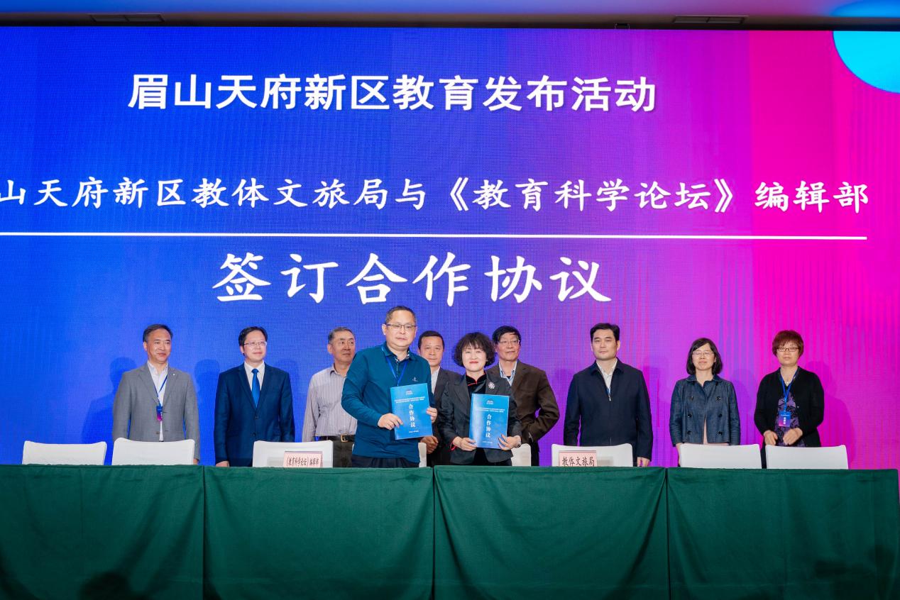 2021年4月28日,眉山天府新区以“教育引领城市发展,开放点亮新区未来”为主题,举行教育发布活动,来自教育部、北师大、省教科院、成都教育行政部门和校(园)长等知名专家,与眉山各界教育同仁齐聚一堂,共同见证《教育科学论坛》编辑部与眉山天府新区教体文旅局签订战略合作协议,未来,双方将就“全域推进高品质学校建设”项目展开全方位的合作。